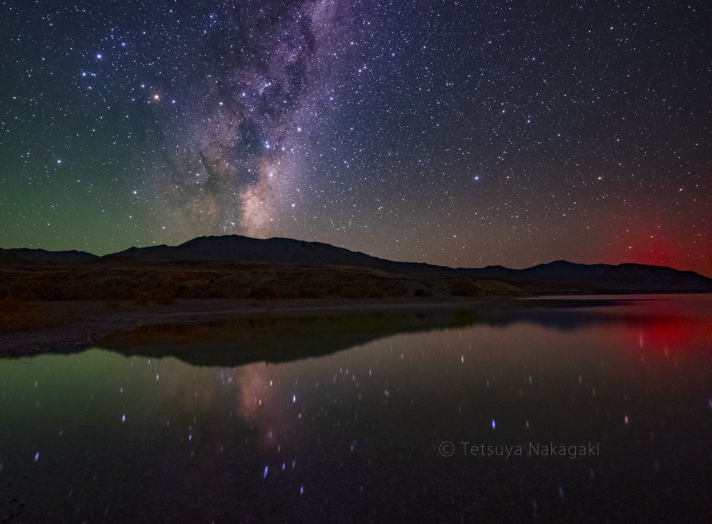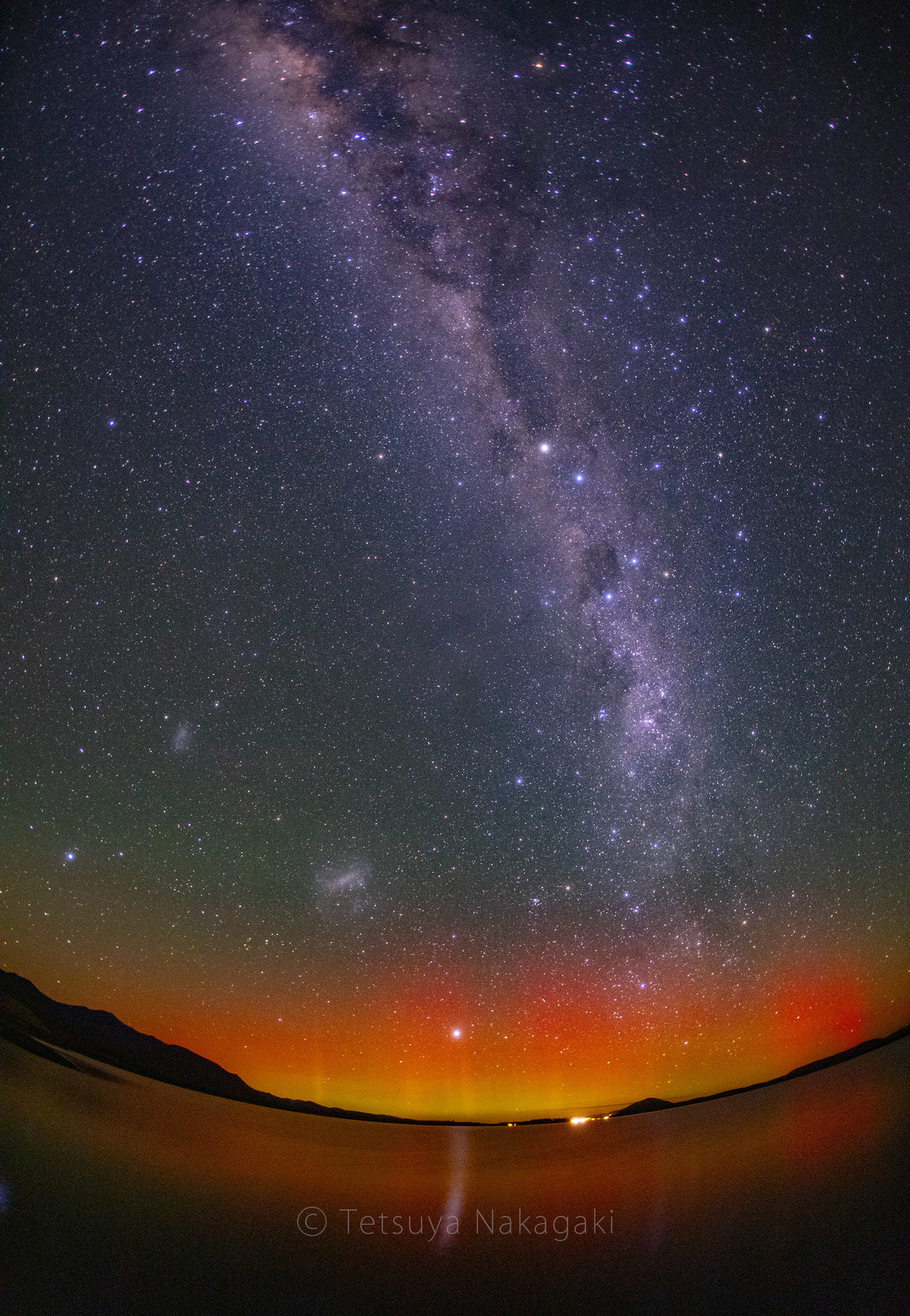 銀河の濃い部分が真っ赤に染まる様子は