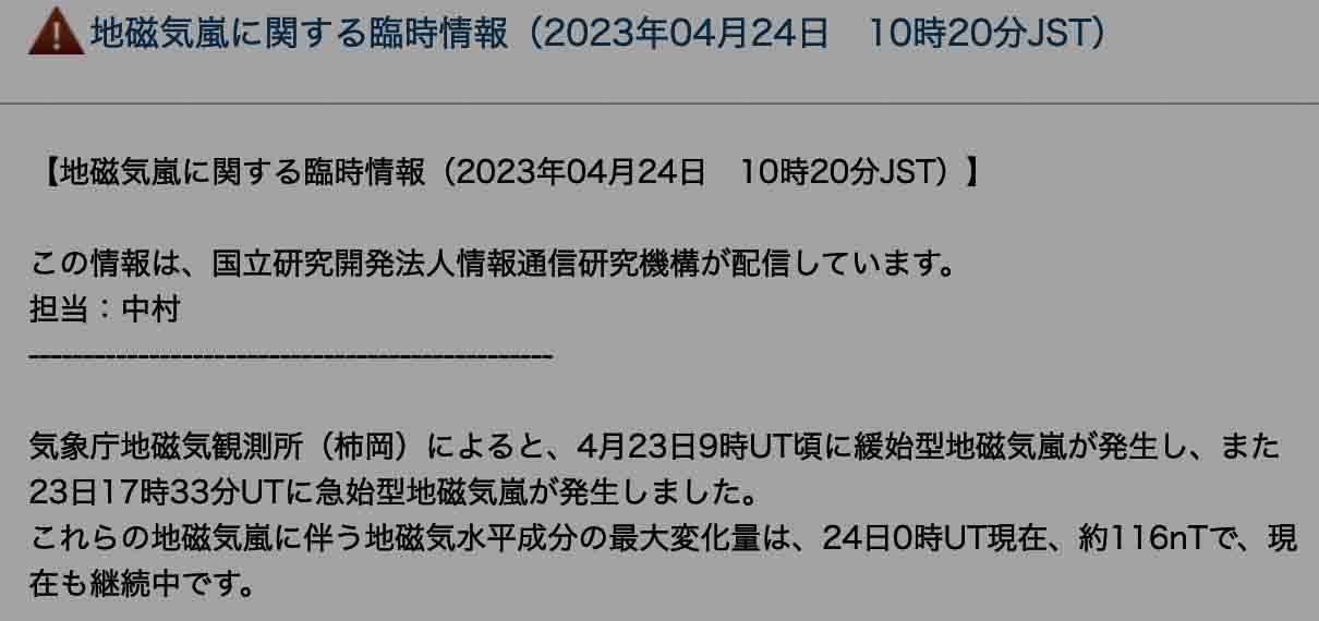 NZで何度も磁気嵐を経験する私でも初めて
