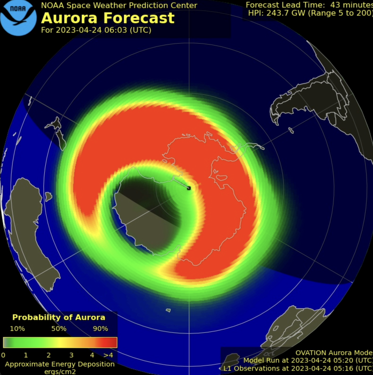 オーロラの位置と強さを短期的に予報するサイト
