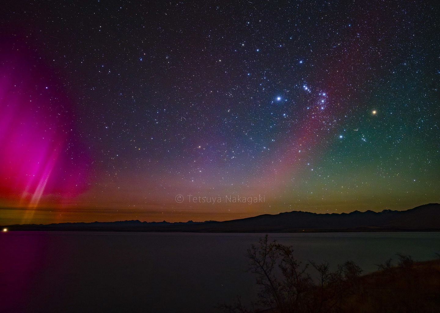 オリオン付近の空の緑色は夜間大気光と思われます