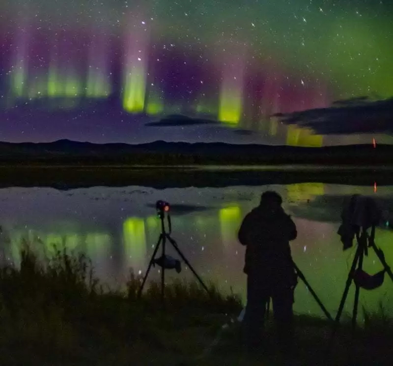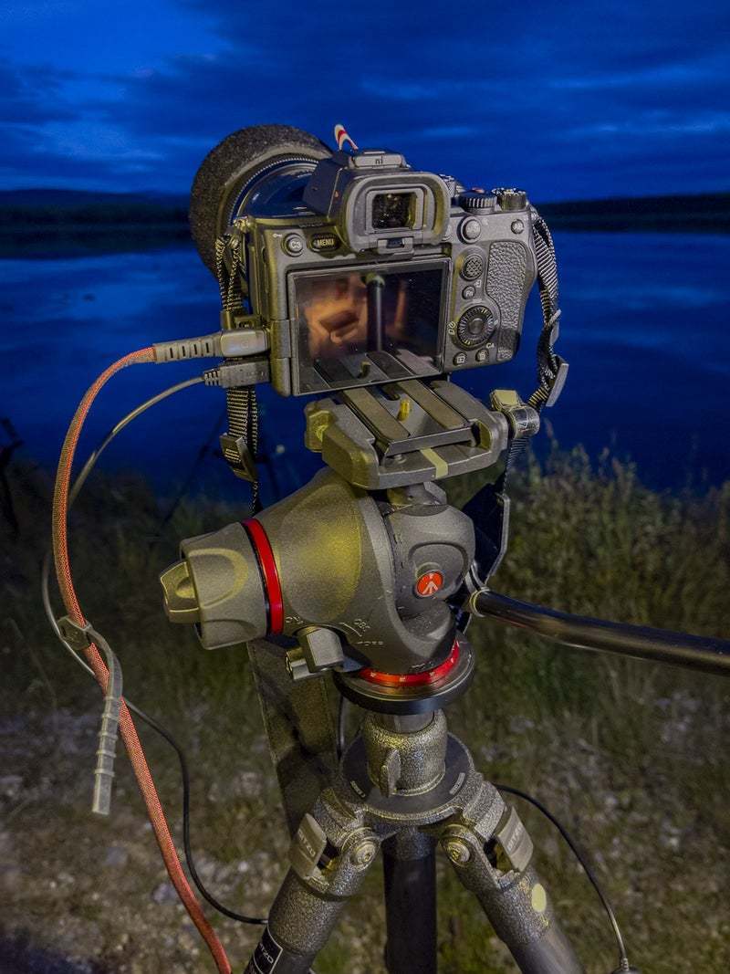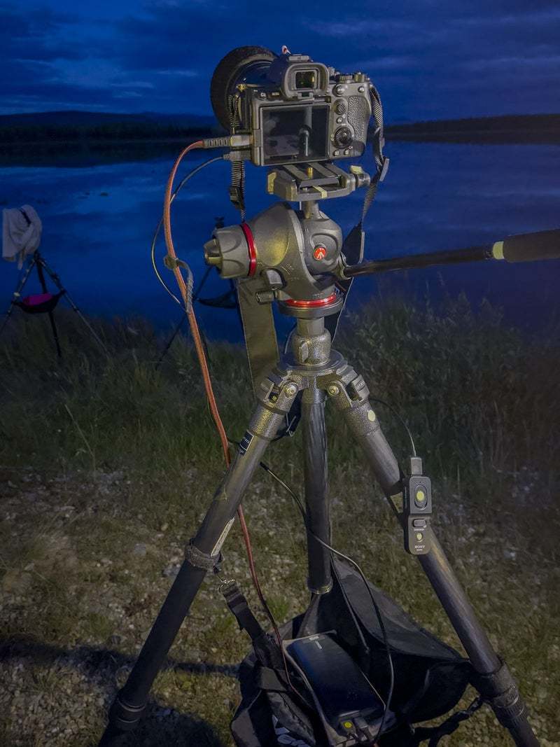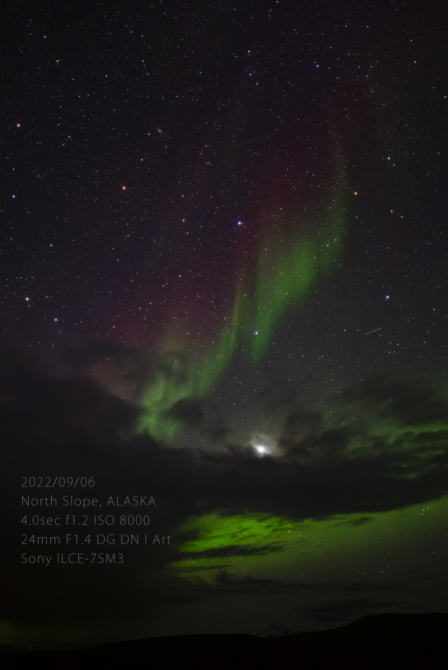 オーロラの撮影は暗闇の中でうごめく繊細な光です。