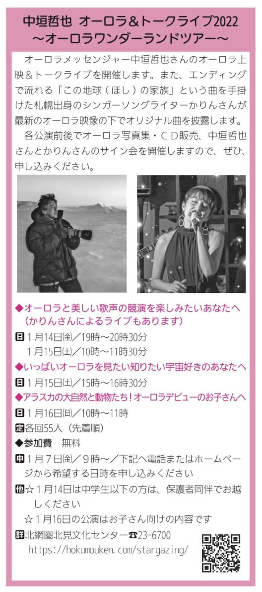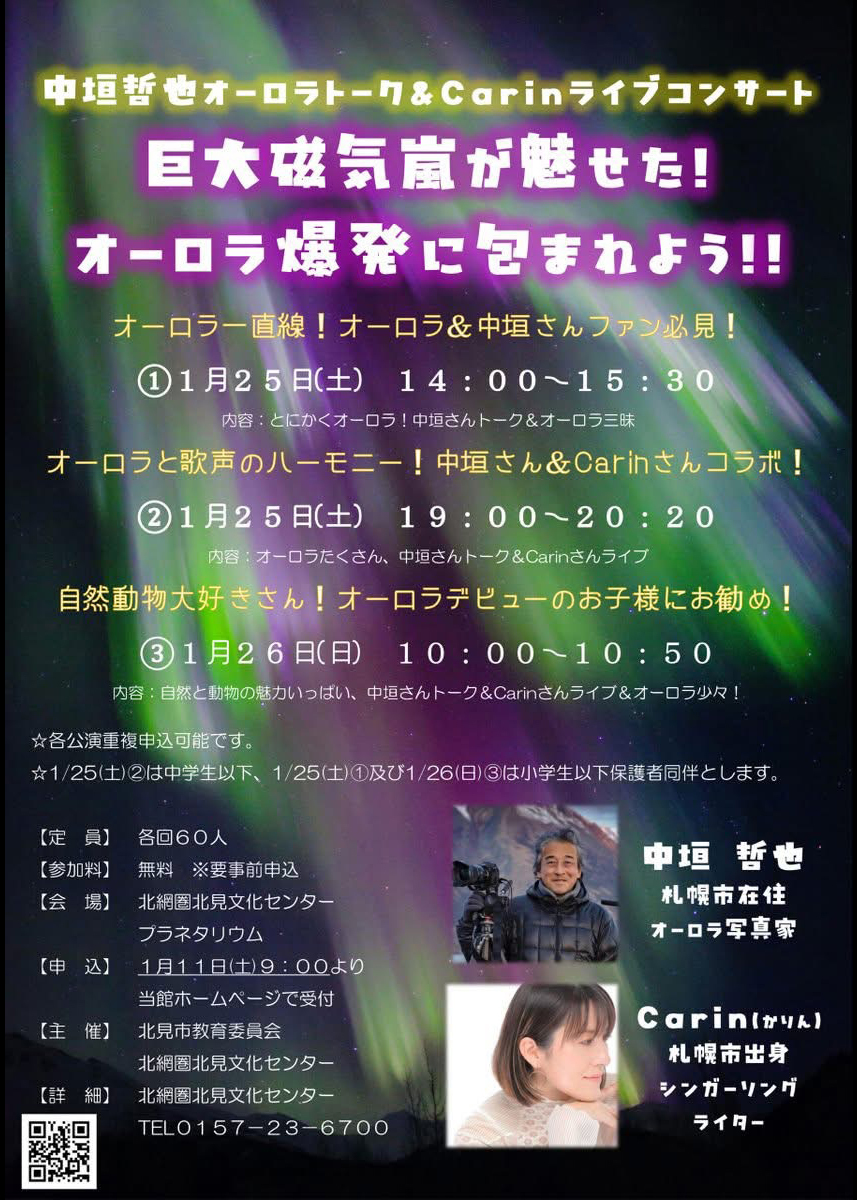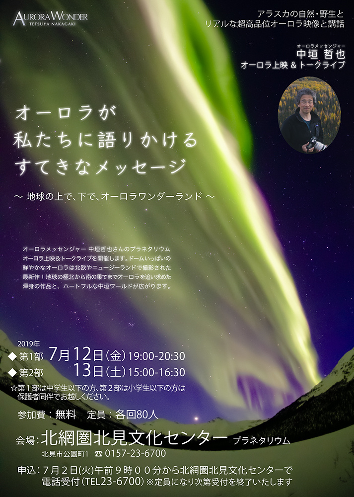 7月19日(土)のなよろ市立天文台でのオーロラ上映イベントは
