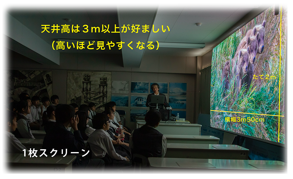 小さな会場はスクリーンを近くから見るため映像は大きく見えるので迫力を感じます。