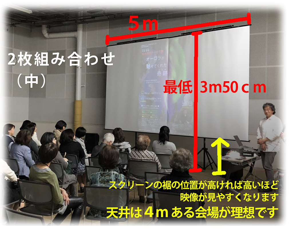 大きい方は横幅 5m、たて3mほどで、50名程度のキャパでは十分です。