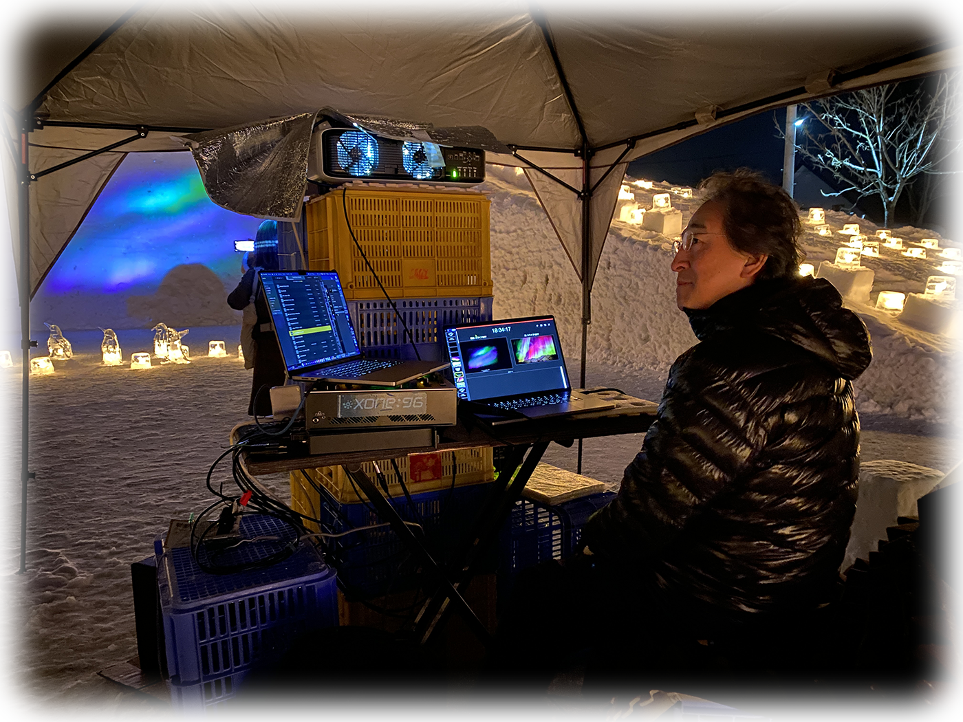 アーティストとオーロラのコラボ / 屋外でのオーロラ上映