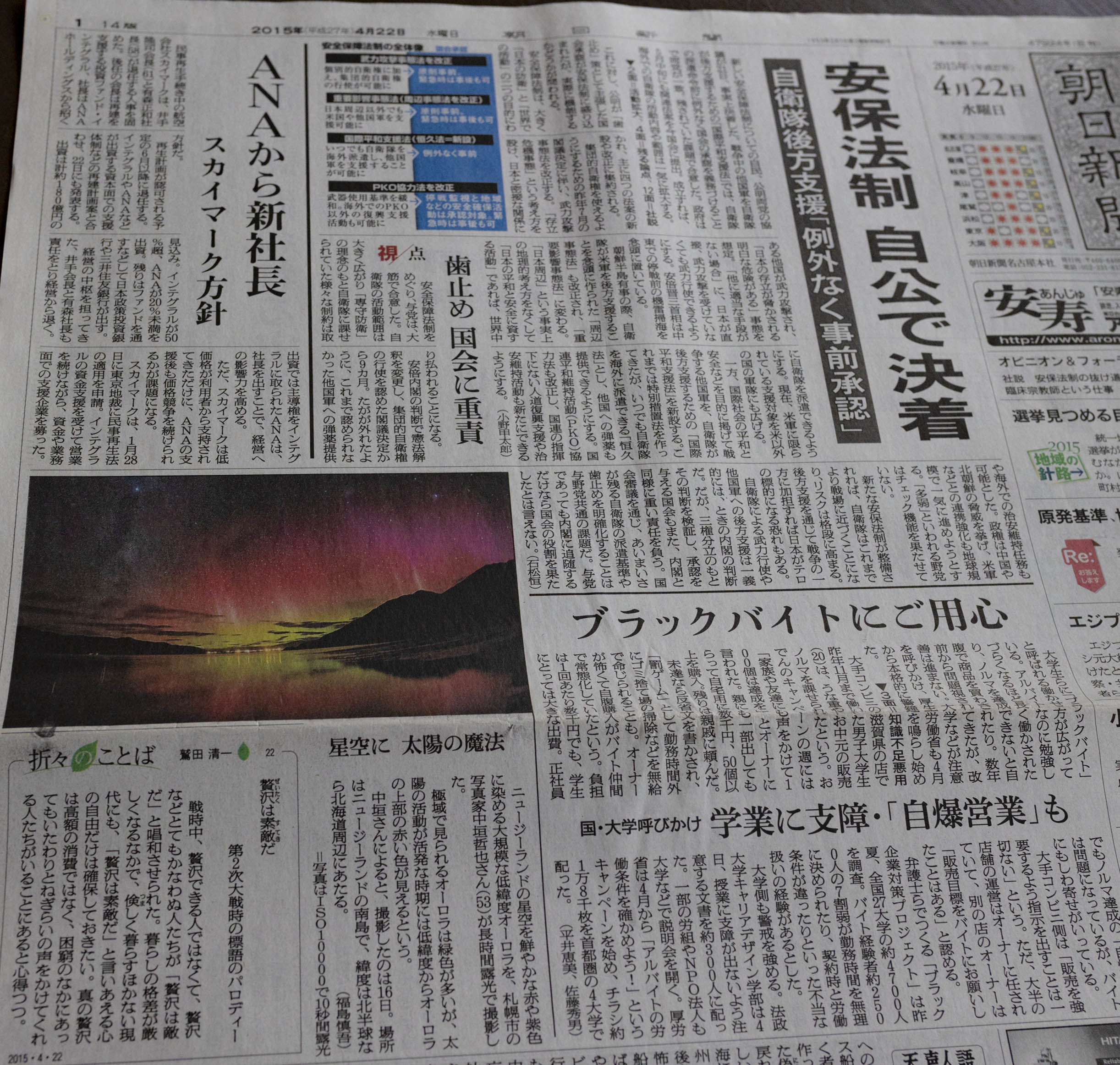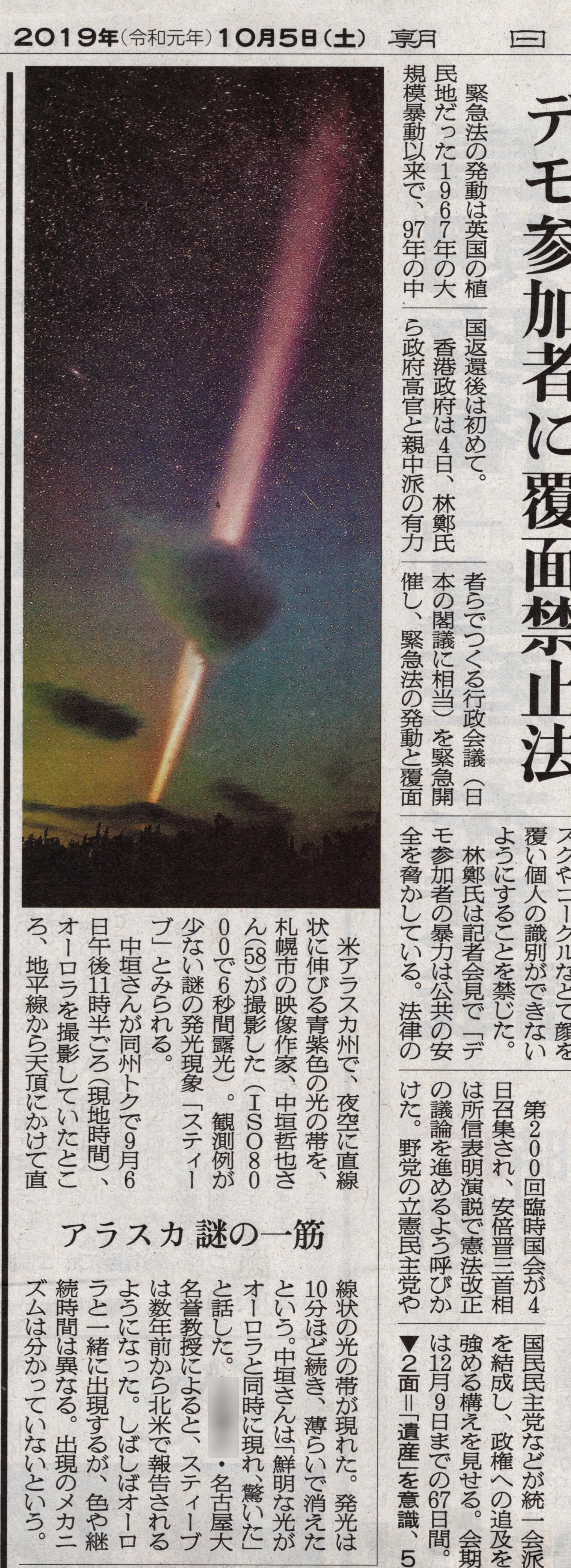 2020年1月29日 朝日新聞 2019年読者の新聞写真