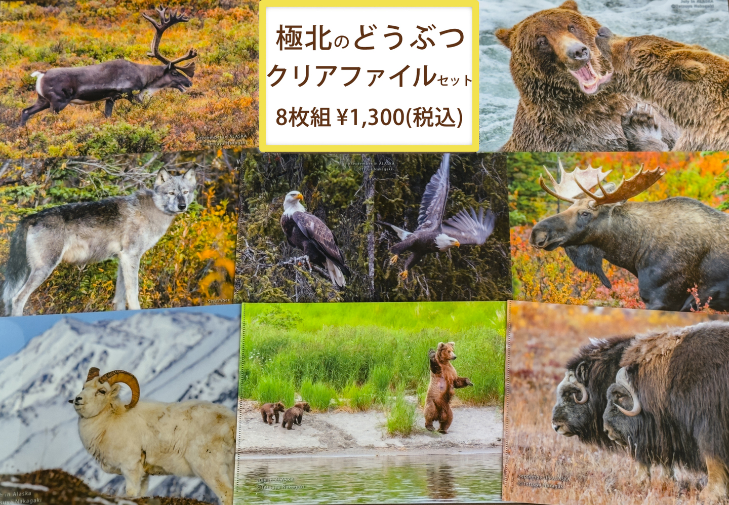 戯れるグリズリー、ヘラジカ、ジャコウウシ