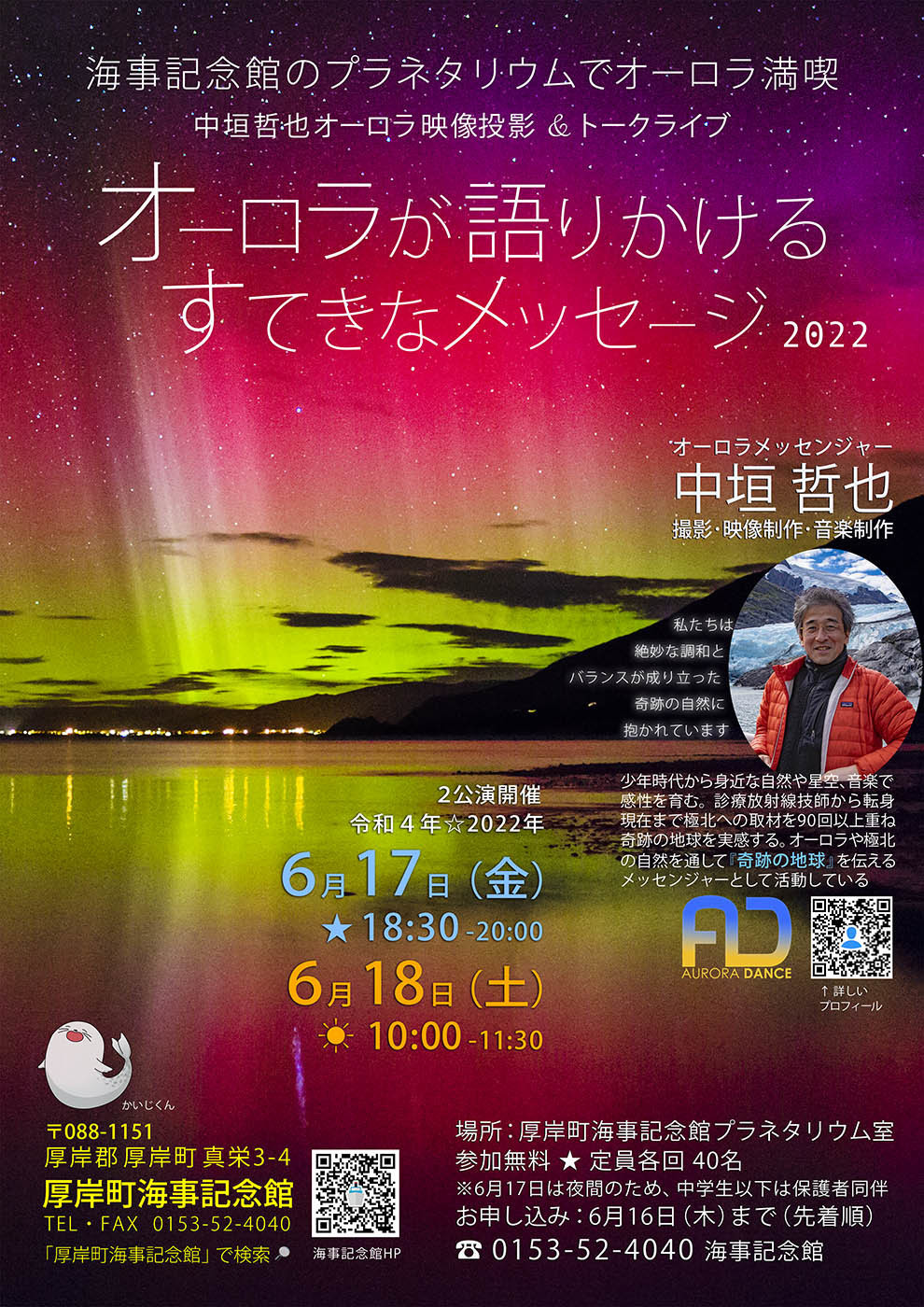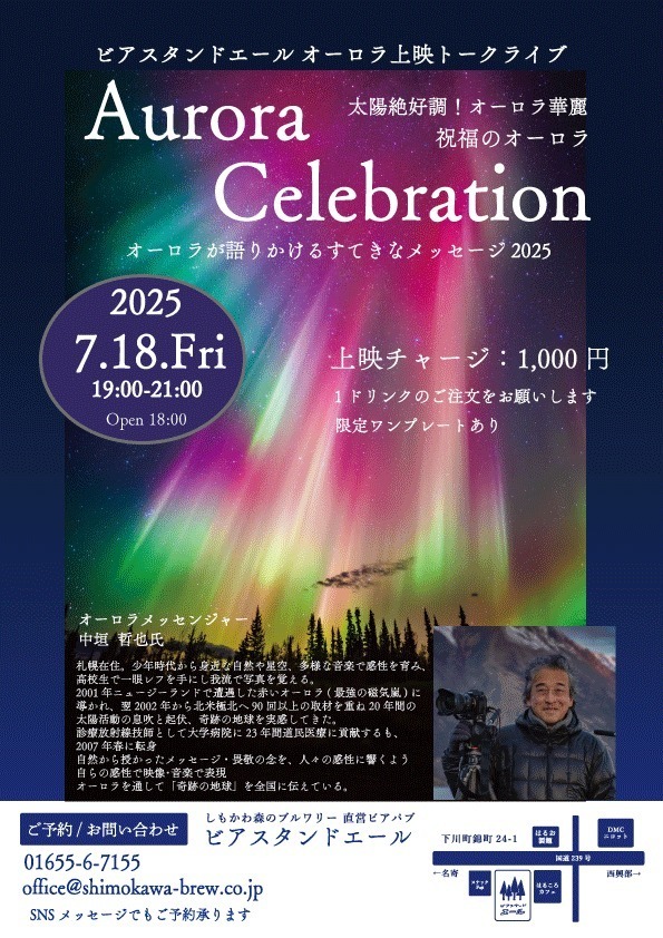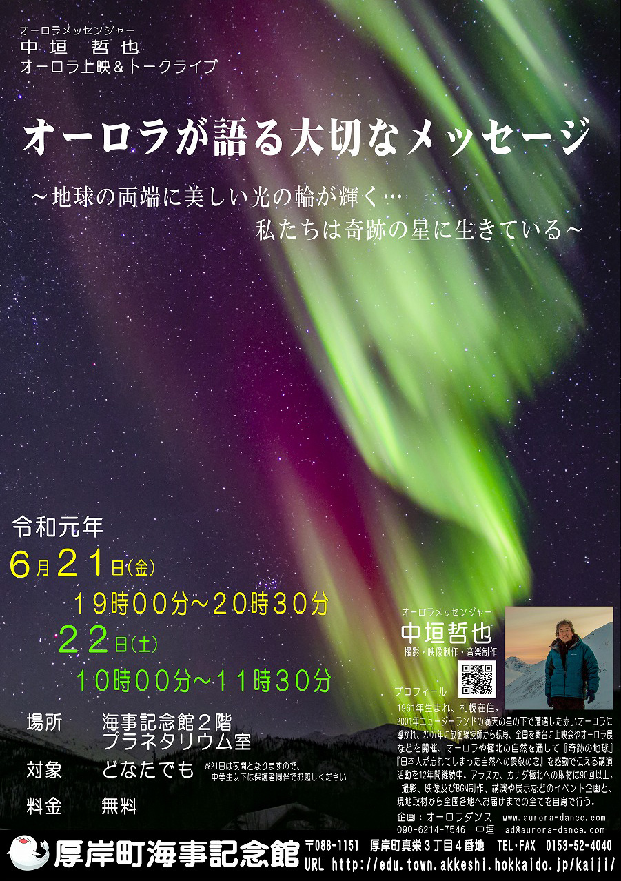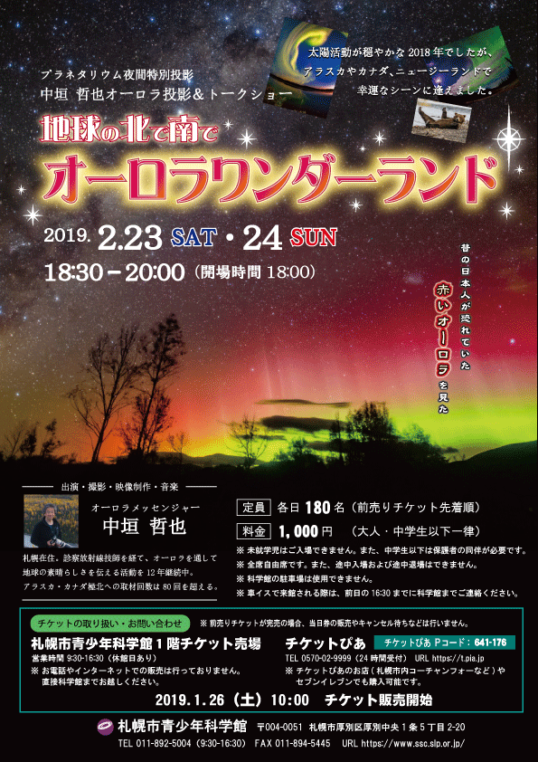 7月19日(土)のなよろ市立天文台でのオーロラ上映イベントは